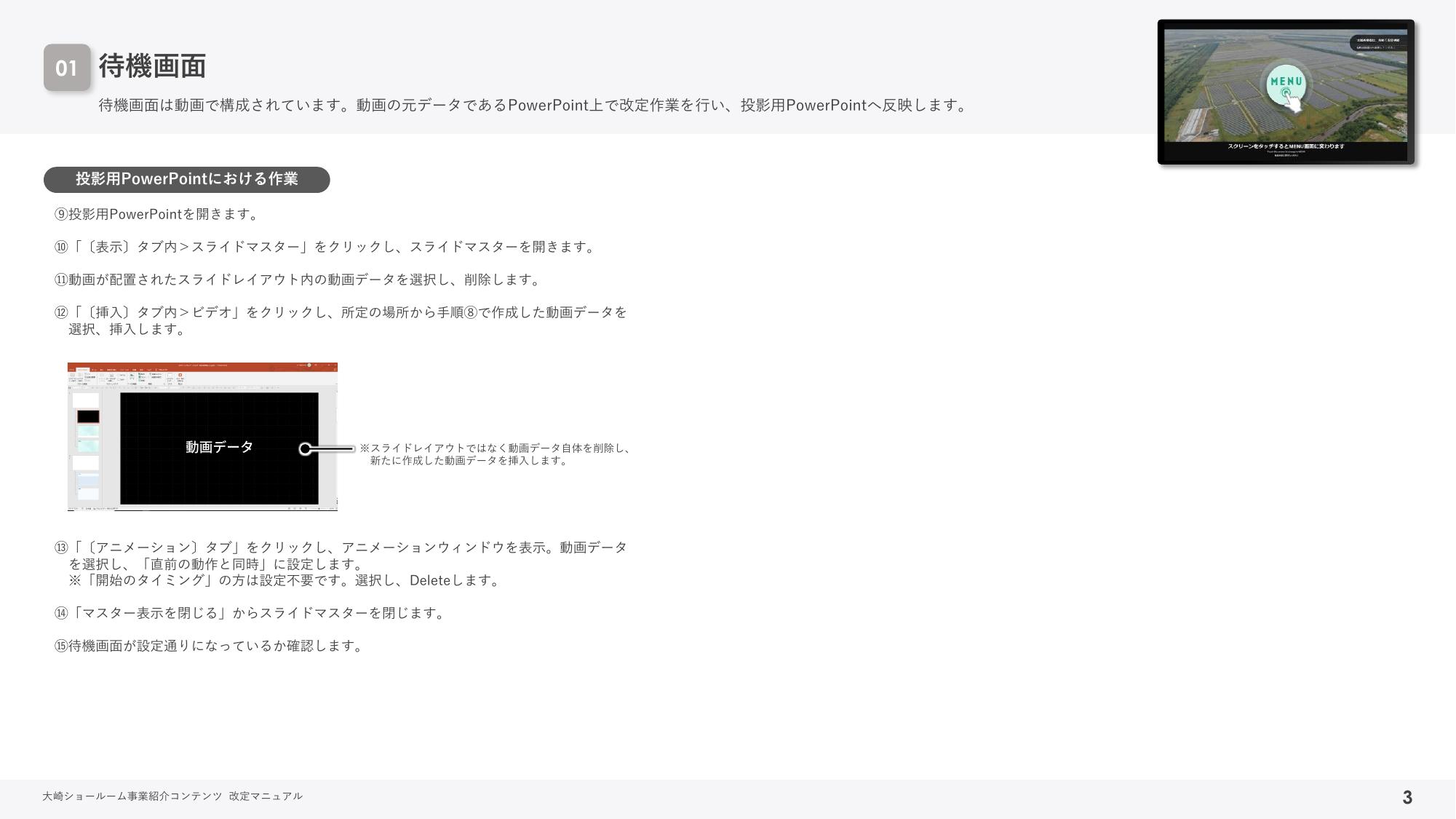 ※エントランス動画・研修など